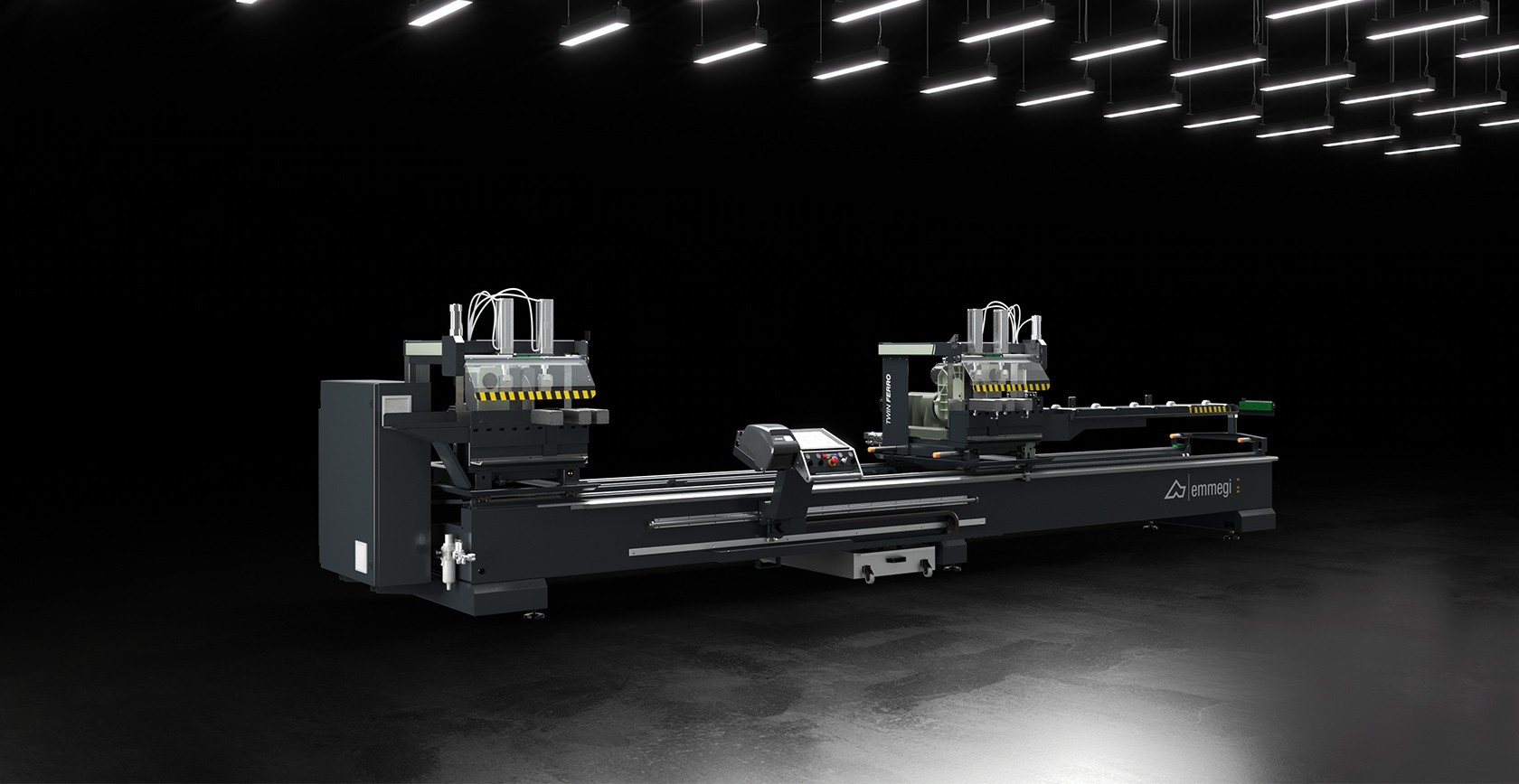 Twin-head cutting-off machine with automatic traverse of the moving head on recirculating ball guides, designed for cutting iron and stainless steel profiles. With its powerful and precise brushless motor, the machine is capable of setting the angular positions of both cutting heads at - 45° / 0° / + 45° in addition to all the angular settings about the vertical axis, with an accuracy on each degree of 240 positions. Traverse of the movable cutting head is automatic and electronically controlled, while it runs on slideways and roller packs such as to ensure the utmost accuracy and rigidity of the machine. Thanks to the increased range of the cutting angle, the movable cutting head can be used as an automatic positioning unit, thereby offering the possibility of machining particularly short workpieces. Optionally it is possible to configure the machine to perform automatic cutting, by programming via software the execution of sequences of push cuts. In this cutting mode there is no need for the operator to remain at the console to keep the two-hands control active.