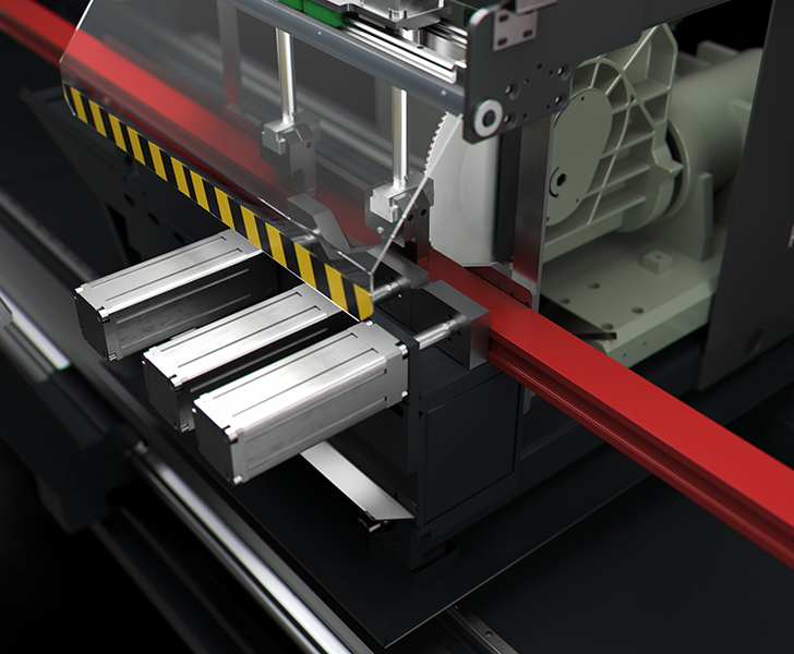 Enables correct positioning in the machine and secure support of the profile in the machining area. Slide rollers make profile handling operations easier.