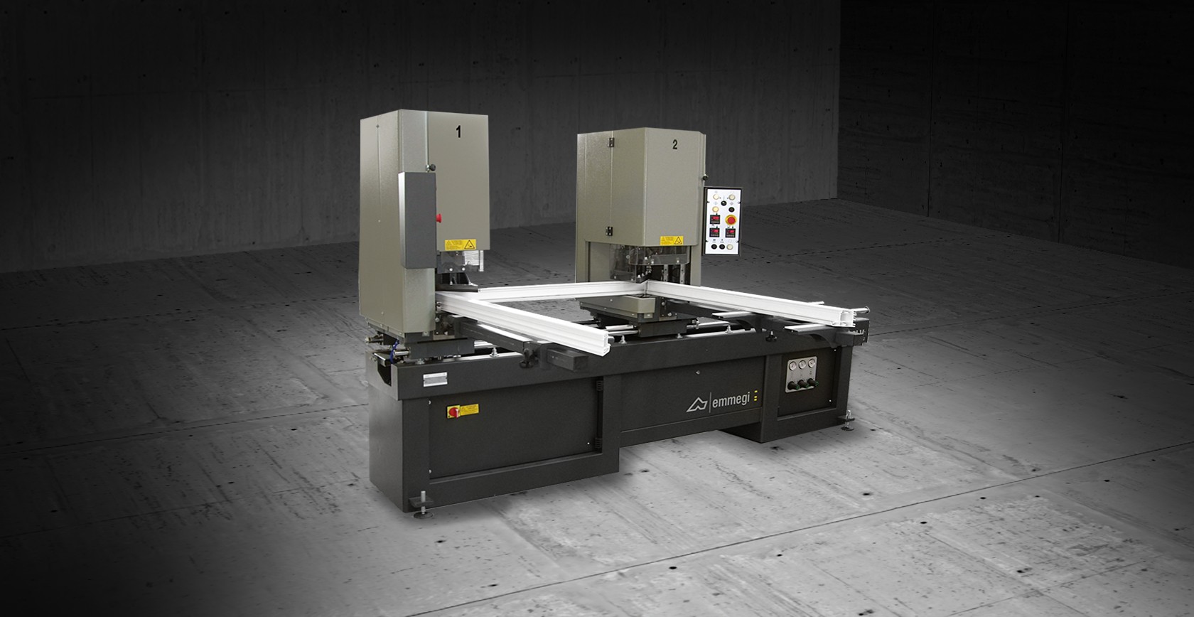 Automatic in-line welding machine with fixed head and movable head for 90° corners, FUSION 2LL is designed for a max. welding length of 2440 mm. FUSION 2LL is provided with heated welding bead restrictors adjustable in the configuration phase, in a range from 0.2 to 2 mm; it also has vertical vices running on linear slideways. Depth of fusion can be set at 2.5 or 3 mm while the support arms feature adjustable height. FUSION 2LL can be fitted with counterblocks (optional) and can handle all types of standard profiles (including acrylic and coated). It is also provided with a system which allows easy cleaning of the teflon film. The work cycle is controlled by a PLC while the heating plate has a digital temperature controller (settable in both °C and °F); the heating and welding time can be set via the LCD display.