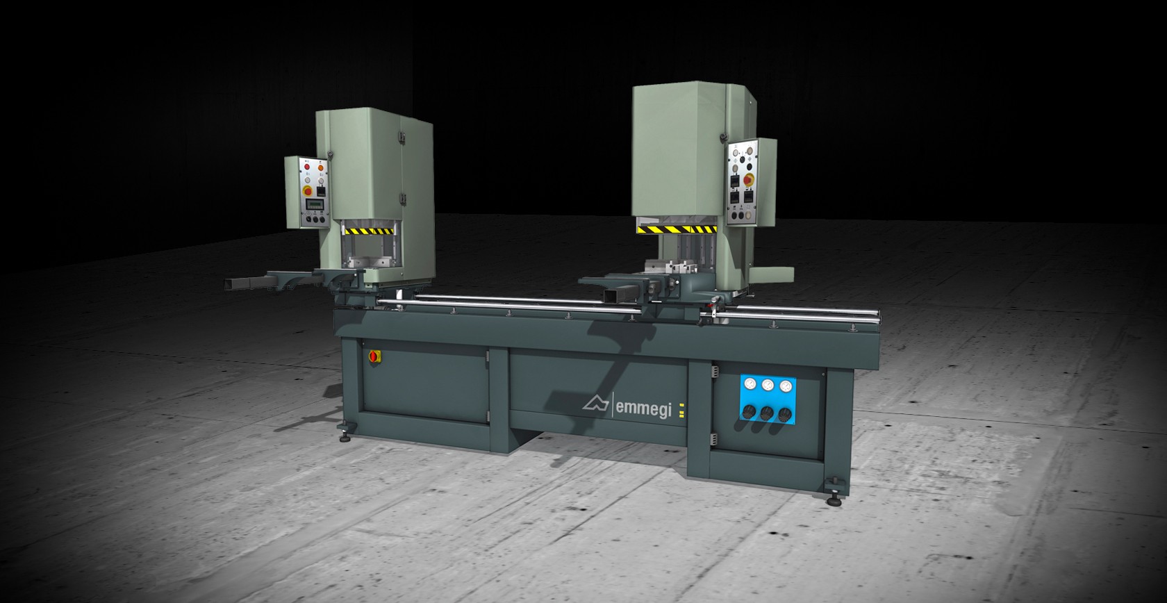 Automatic in-line welding machine with fixed head for right angle corners and movable head for corners in the range 30° to 180°. FUSION 2 LV comes in 2 versions and 2 lengths: with or without heated knives and with a max. length of 3440 mm (long version) or 2440 mm (short version). FUSION 2 LV is provided with heated welding bead restrictors adjustable in the configuration phase, in a range from 0.2 to 2 mm; it also has vertical vices running on linear slideways. Depth of fusion can be set at 2.5 or 3 mm while the support arms feature adjustable height. FUSION 2 LV can be fitted with counterblocks (optional) and can handle all types of standard profiles (including acryilic and coated). The machine, provided with a quick change system, allows easy cleaning of the teflon film. The work cycle is controlled by a PLC while the heating plate has a digital temperature controller (settable in both °C and °F); the heating time can be set via the LCD display.