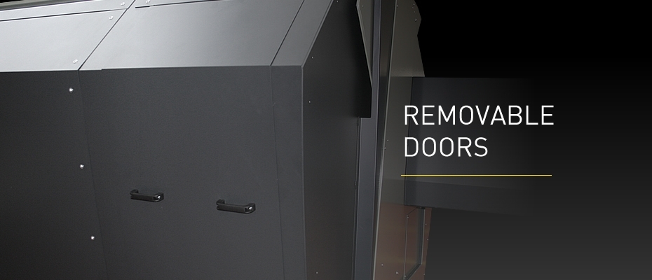 For ease of access and optimal inspection, the enclosure has two removable doors equipped with safety microswitches, one next to the fixed head and the other at the opposite end of the machine.
