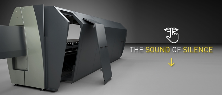 Available as an option for all Precision T2 and Precision RS models (basic and HS versions) for aluminium and PVC Technical features > Enclosure frame and panels in powder coated steel. The panels and doors are clad with sound-absorbing material for enhanced isolation. > There are skirts fitted between the frame and floor around the entire perimeter of the machine to further improve the soundproofing performance of the enclosure. Machining dust and chips thus remain inside the enclosure. Optimal solution also for cutting composite materials such as fibreglass. > Lighting provided by three 3000 lumen LED lamps. The enclosure has two 70 mm dia. ports and two 100 mm dia. ports on the left-hand side for connection of an external suction system. > For ease of access and optimal inspection, the enclosure has two removable doors equipped with safety microswitches, one next to the fixed head and the other at the opposite end of the machine.